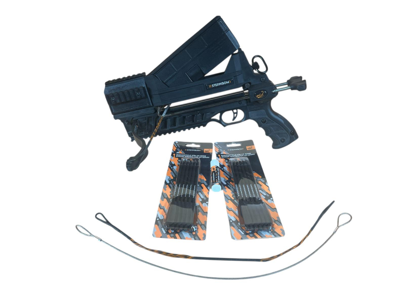 - Repetierarmbrustpistole mit M10 Magazin und direktem Spannsystem, 35 lbs „Stinger II CQ“ Wurfarm.